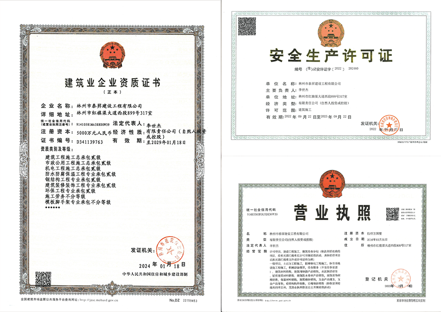 林州市泰昇建設工程有限公司始于1980年初,正式成立于2016年3月1日,注冊資金5000萬元,公司地址位于著名的“建筑之鄉”河南省林州市,是林州人創立的一家有著四十多年發展底蘊的專業化、標準化建筑工程公司。 公司現有員工376人,各類專業技術人員89人,其中一級建造師6人,二級建造師18人,擁有中高級職稱的工程技術和工程管理人員27人,初級技術管理人員38人。 “精細管理、精準經營,精益求精打造精品工程;為人樸實、工作扎實,踏踏實實做實企業發展。”這是泰昇人在艱苦的創業過程中磨礪出來的企業性格。